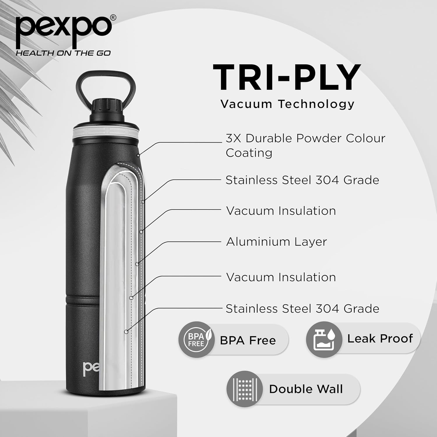 • Loop Handle: Make carrying your Pexpo Altros bottle a breeze with its sturdy handle, designed for secure and comfy transport during sports, trek, office hours or daily commutes by metro, train, bus, or road trip, ensuring convenience wherever you go